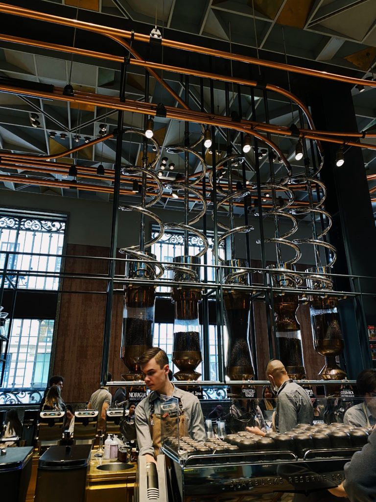 Je n’ai pas pour habitude de renseigner ce genre de grande enseigne dans mes articles voyages, mais celle-ci vaut la peine d’être vue. Proche du Duomo, ce Starbucks est un véritable torréfacteur de café, le 3eme dans le monde. Vous pourrez y gouter des cafés exclusifs au lieu mais également et surtout, y observer la torréfaction du café en direct. J’avais l’impression de me trouver dans Charlie et la Chocolaterie version café, tellement l’intérieur est beau, grand et impressionnant. Vous pouvez également y manger, ce que je n’ai pas testé.