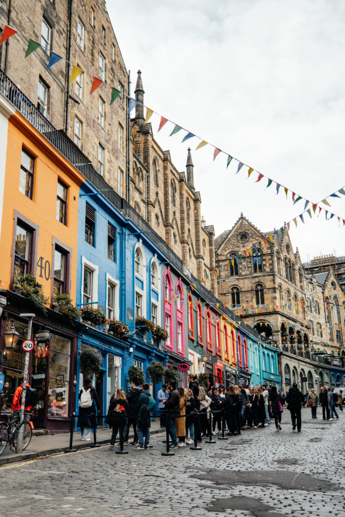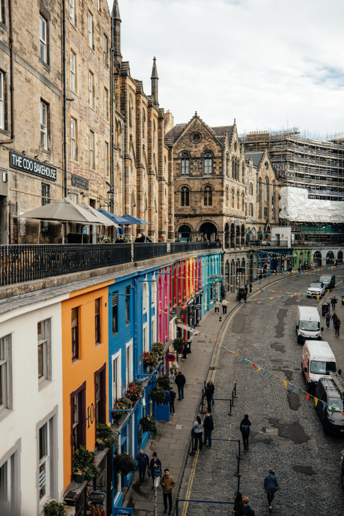 C’est LA rue emblématique d’Edimbourg. Connue pour ses bâtiments colorés mais également pour avoir inspiré J.K Rowling* pour le chemin de traverse dans Harry Potter. Vous y retrouverez de nombreuses boutiques (un peu touristiques certes) mais également de chouettes libraires ou restaurants.