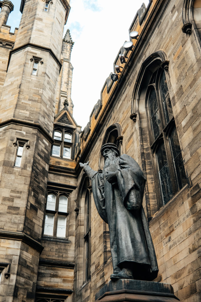 Son architecture est splendide et très caractéristique de la ville. Mais il faut rentrer dans sa cour pour observer cette magnifique vue secrète sur la Cathédrale Saint Gilles. Vous pourrez également y trouver une statue de John Knox.