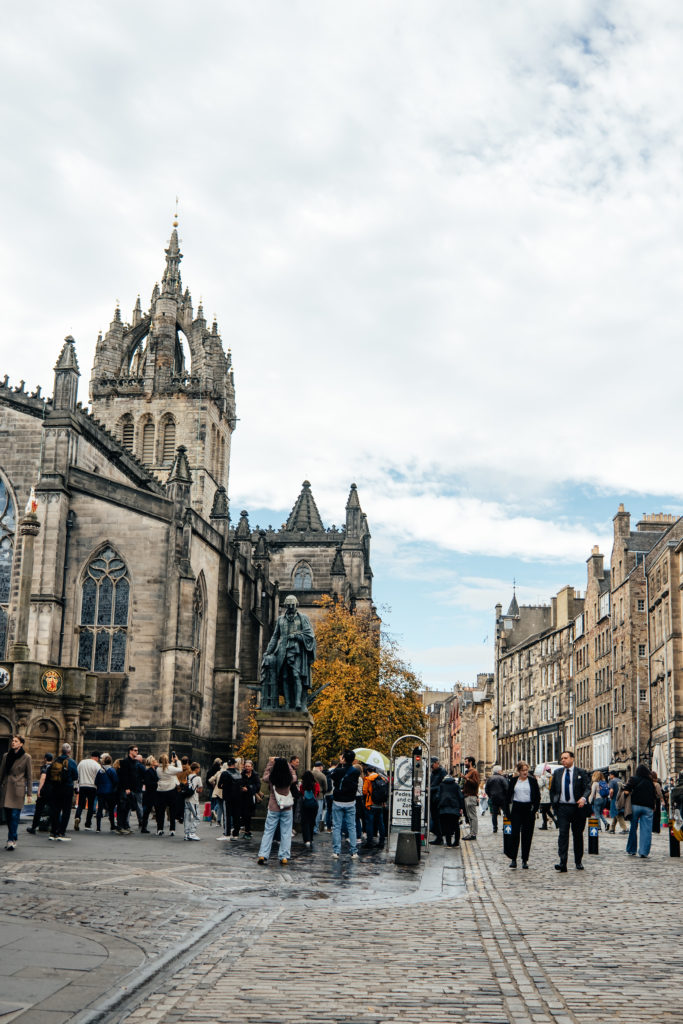 Sur cette portion du Royal Mile, vous y trouverez plusieurs endroits emblématiques comme la Cathédrale Saint-Gilles, le Tron Kirk Market, une église réaffectée en marché de créateurs, mais aussi beaucoup de boutiques et pubs.
