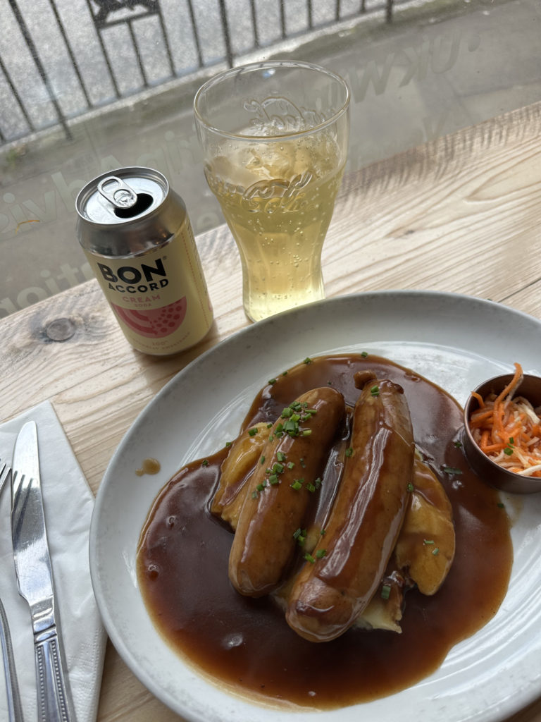 – Un bangers and mash chez Makars Mash Bar. C’est « simplement » de la purée et de la saucisse, mais qu’est-ce que c’est bon!