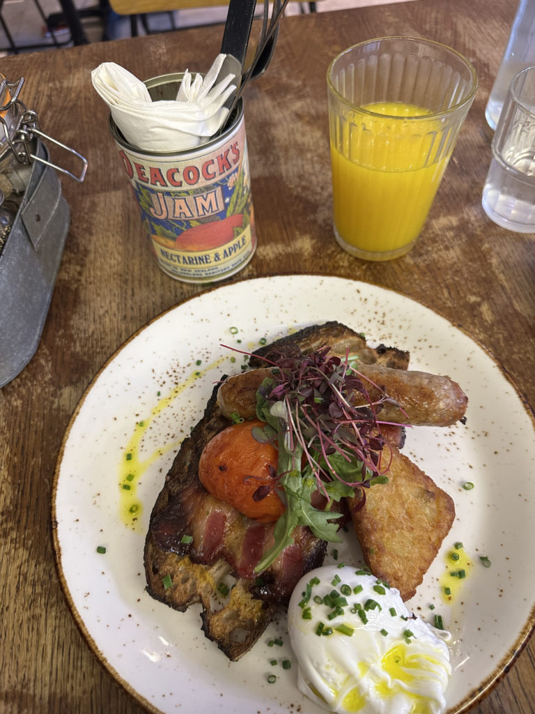 – Un petit déjeuner écossais chez The Pantry. J’ai fais l’impasse sur le haggis, une panse de brebis farcie à la viande, ainsi que sur le black pudding, un type de boudin noir.