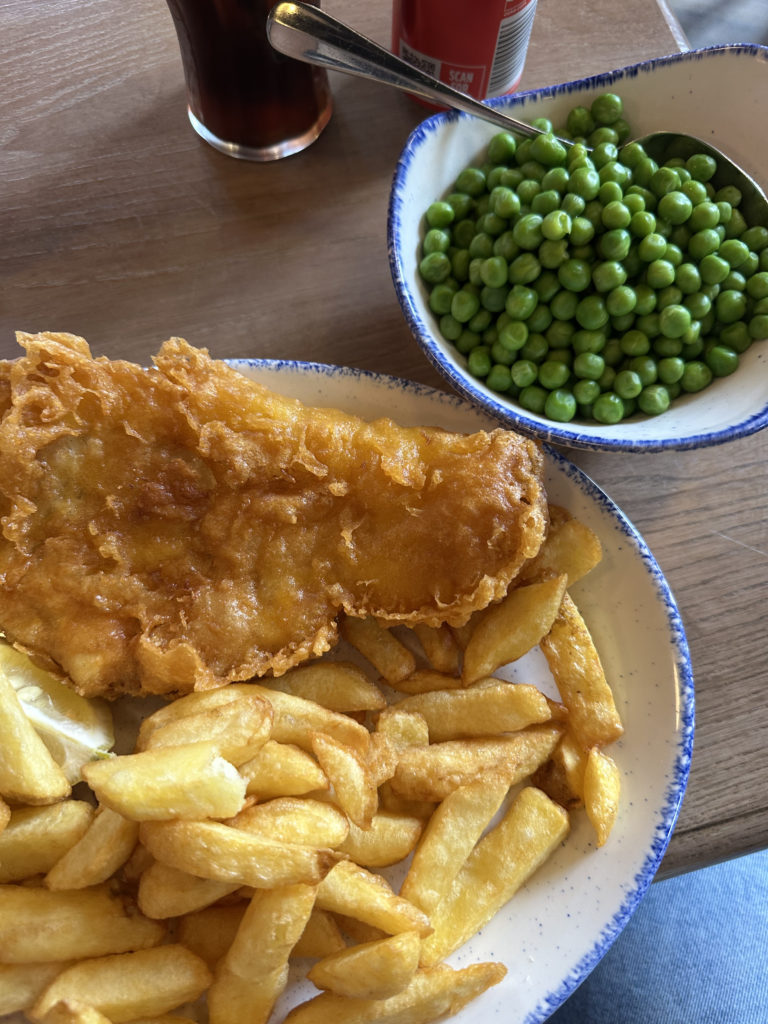 – Le classique fish & chips chez Landy’s. Accompagné de petit pois bien sur!